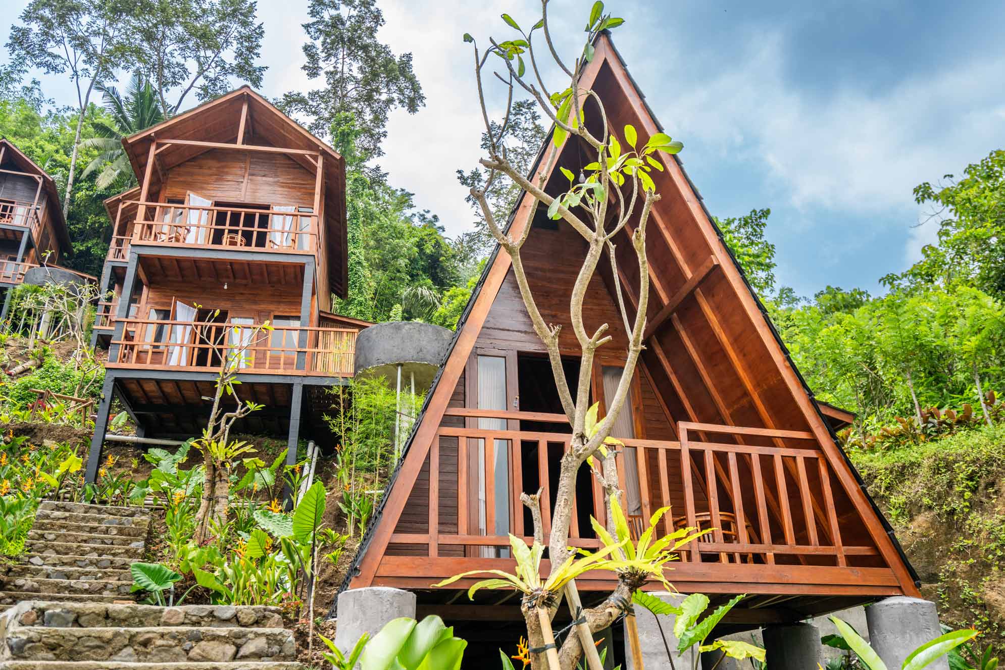 Inspired by traditional Balinese rice barns, the Lumbung Villa offers a cozy and authentic stay with beautiful hill views.